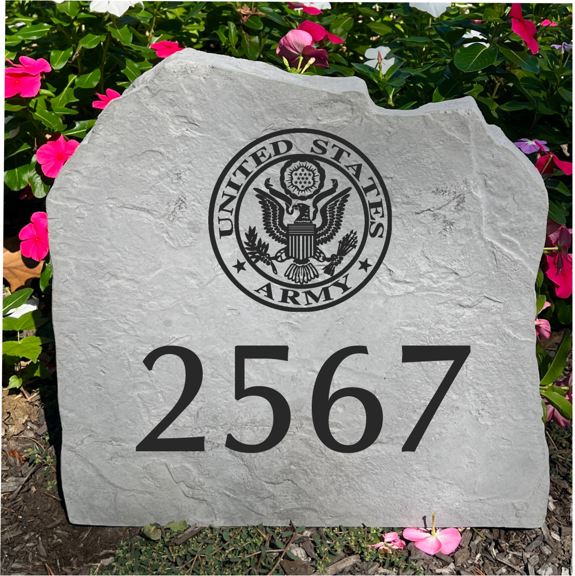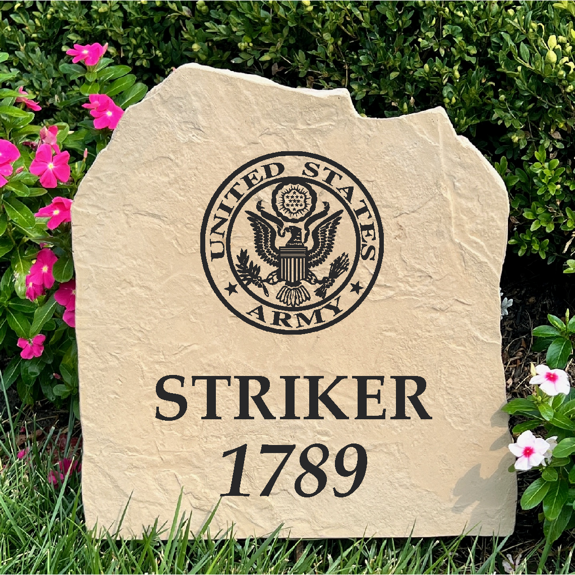 Perfect for a special and thoughtful housewarming gift or to elevate your own landscape, our personalized garden stones are fully customizable with your choice of text and graphics. Add a house number, family name, unit, years of service, or a meaningful message to create a one-of-a-kind U.S. Army address marker or decorative yard stone. Its natural stone appearance blends seamlessly into any outdoor setting while proudly displaying Army pride.