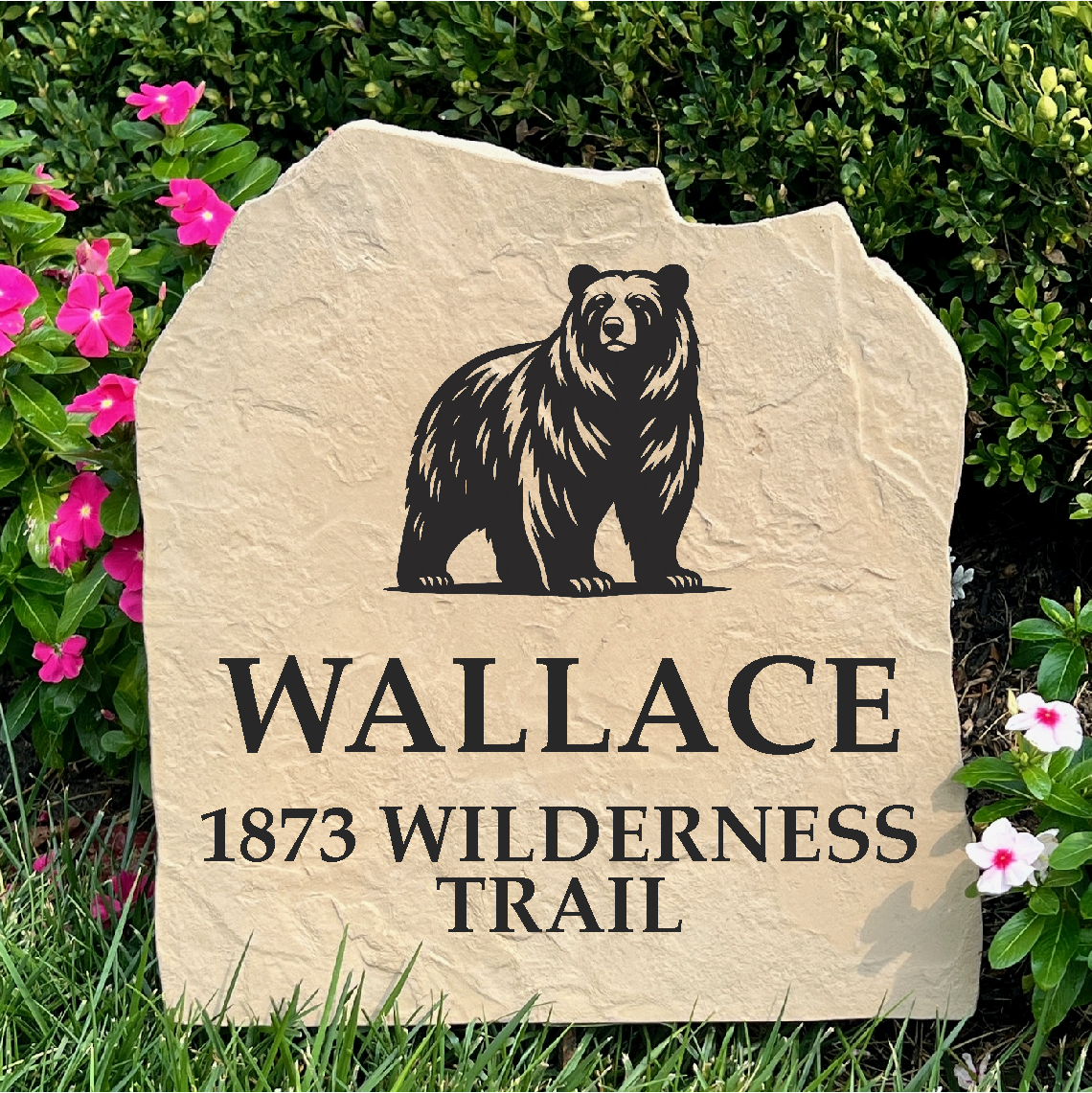 Perfect for a special and thoughtful housewarming gift or to elevate your own landscape, our personalized garden stones are fully customizable with your choice of text and graphics. Add a family name, property name, cabin title, or meaningful phrase to create a one-of-a-kind bear marker that reflects your personal style. It’s an ideal addition to wooded properties, walkways, gardens, lodges, and outdoor spaces where rugged charm meets timeless design.