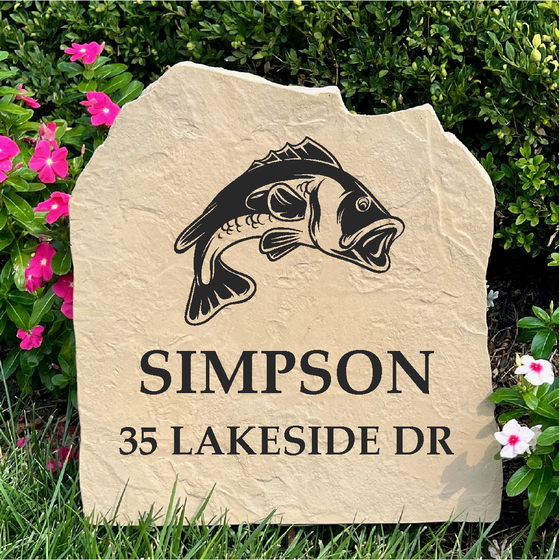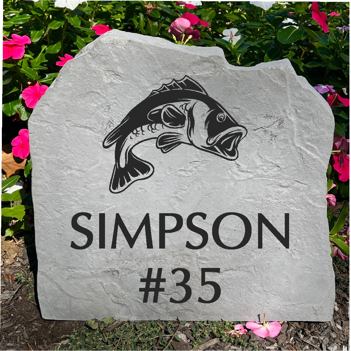 Perfect for a special and thoughtful housewarming gift, to elevate your own outdoor space, or as durable business signage for fishing guides or outfitters, our personalized garden stones are fully customizable to fit your needs. Add a family name, lake access direction, favorite fishing spot name, dock marker, or business branding to create a unique fishing marker that reflects your passion. Ideal for private docks, shorelines, camps, marinas, fishing lodges, and outdoor recreation areas.
