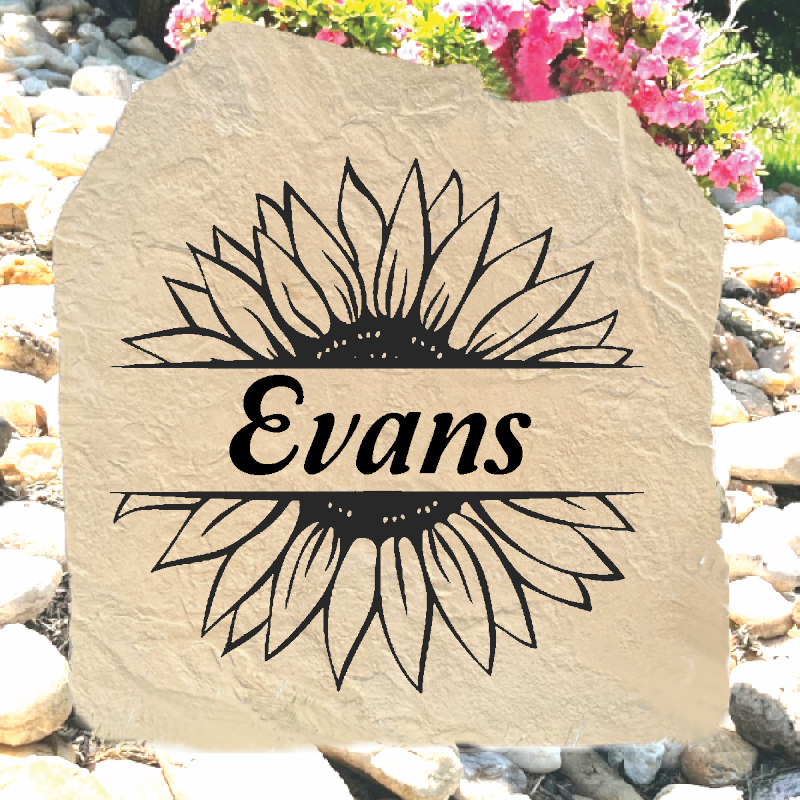 Our personalized garden stones are crafted to resemble natural stone, featuring a textured, realistic finish that blends seamlessly into soil, mulch, lawns, and landscaped areas. Each sunflower marker is engraved directly into the surface of the stone—not printed—ensuring crisp detail, clear readability, and a permanent design that will never fade, peel, or wear away. To protect against the elements, every marker is finished with a weatherproof outdoor sealant, making it suitable for year-round outdoor use in all climates. Built for lasting quality, these stones are guaranteed to last a lifetime.